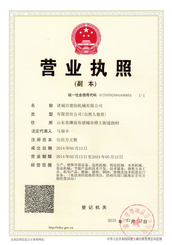 諸城市德創機械有限公司位于山東省諸城市,東鄰青島,南靠日照,北依濰坊,交通便利,環境優美。我公司專業生產無害化處理設備、濕化機、干化機。 我公司是一家擁有生產、加工及銷售的環保設備制造單位,多年來以先進的設備、過硬的質量、合理的價格、完美的售后,竭誠為廣大客戶服務,贏得了全國各地客戶的真誠信賴與大力支持,在行業中樹立了較高的知名度。 我們擁有精良的工藝裝備,外觀與內在并重的質量理念,用戶至上的服務意識,從而保證每一位用戶的產品應用取得更好的經濟效益。我們深信:“誠信、務實、創新”是我們所能帶給用戶的最有價值的東西。本著這種精神,我們正一天天穩步的向前發展。公司在不斷發展、擴大經營的同時,更把售后服務和客戶滿意度放在首要位置,以品質保證,價格合理,交貨期快,誠信服務和專業的知識來贏得用戶完全的信任。信任源于品質,服務創造未來,公司與您攜手共創美好明天! |